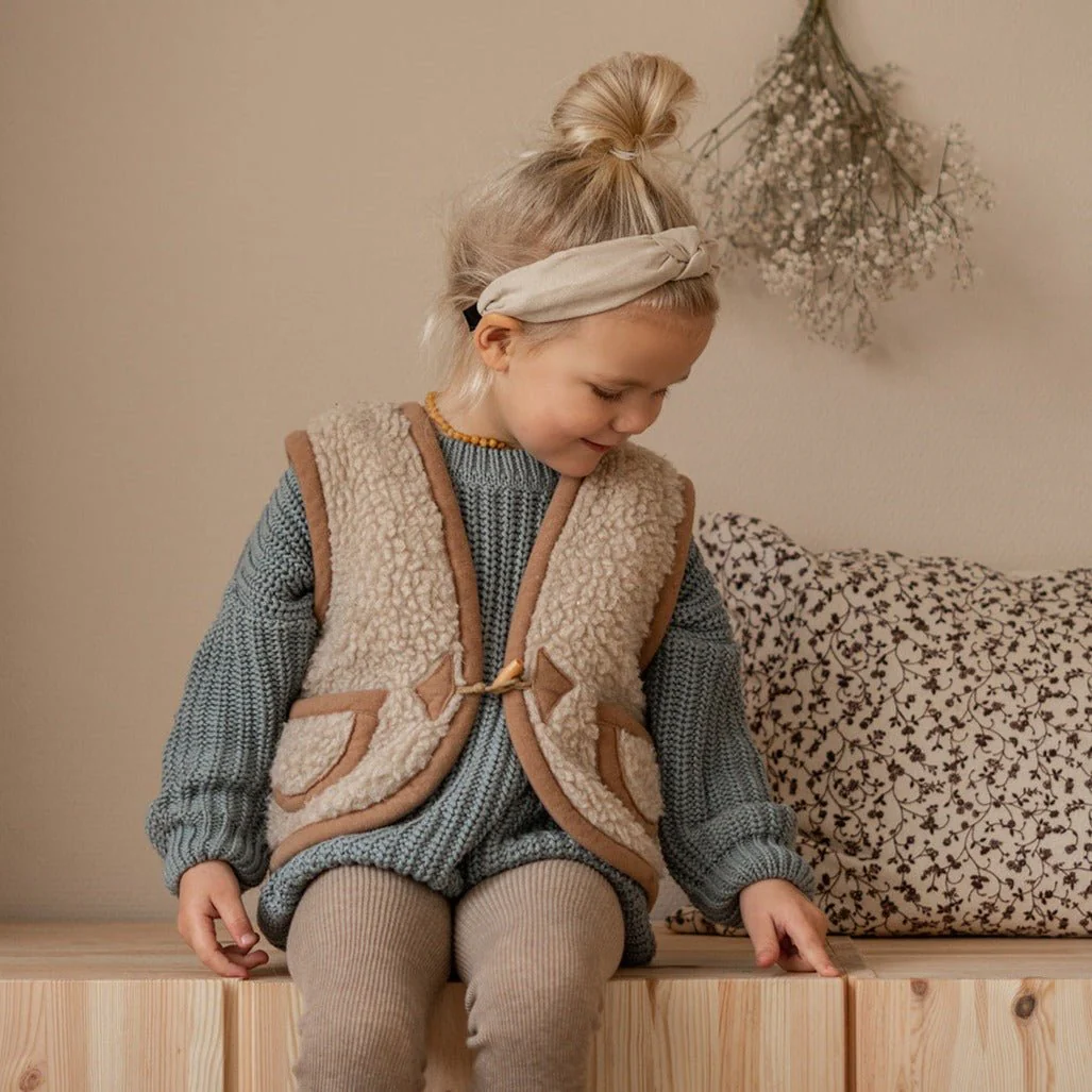 Extra bijzonder: deze beige bodywarmer is ook verkrijgbaar in volwassen maten, zodat ouder en kind samen kunnen twinnen!